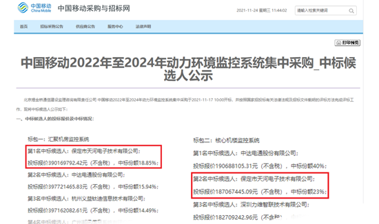 天河電子中標(biāo)中國移動(dòng)2024-2026動(dòng)環(huán)監(jiān)控集采項(xiàng)目