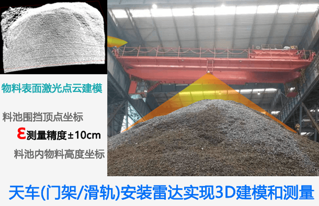 通過(guò)激光檢測(cè)器對(duì)料場(chǎng)進(jìn)行掃描,通過(guò)算法快速計(jì)算出物料體積。