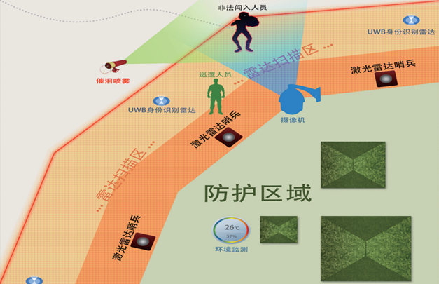采用激光平面掃描技術(shù),實現(xiàn)對地面、空中警戒區(qū)域的全方位、無死角的立體無縫防護
